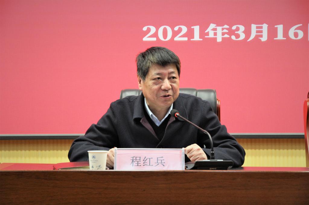 程红兵在讲话中传达了中央党史学习教育动员大会精神,紧密围绕着“为什么学”“学什么”“怎么学”三个方面有层次有重点地展开了动员部署。