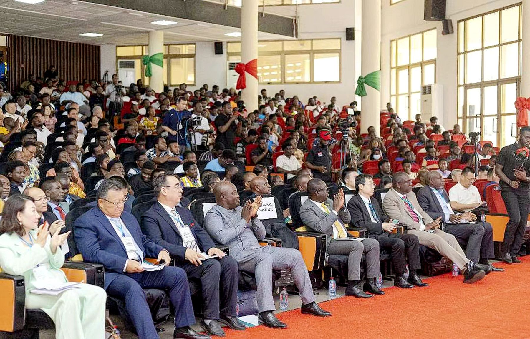 中国驻加纳使馆公使衔参赞李旸、我校校长王晓、阿散蒂省省长富兰克・阿莫阿科赫内、加纳能源与绿色转型部可再生能源处主任塞思・阿格贝维・马胡、加纳华人华侨联合会会长唐宏等出席开幕式并致辞。来自中国、加纳、肯尼亚、南非和尼日利亚等中非五个国家的政府部门、高校、企业代表,以及恩克鲁玛科技大学师生代表共计500余人参会。
