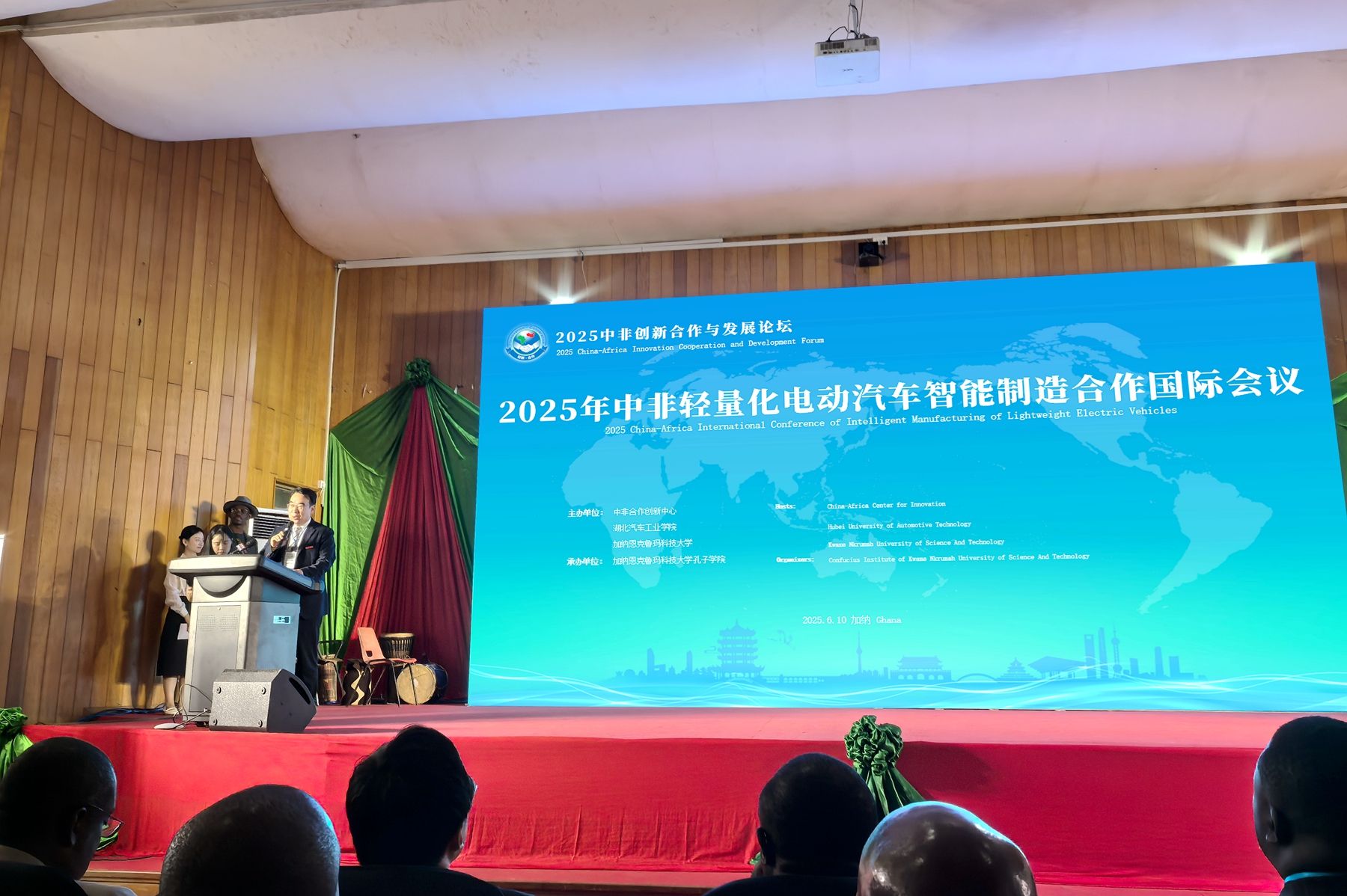 本网讯(文/何静、付雅巍)6月10日,2025中非汽车发展论坛在加纳恩克鲁玛科技大学盛大开幕。本次论坛以“轻量化电动汽车的智能制造”为核心主题,聚焦新能源汽车与智能制造领域的前沿技术及产业发展趋势,深度挖掘中非汽车产业合作的全新机遇、模式与路径,为推动中非汽车工程教育与科技创新的高质量发展注入新动力。