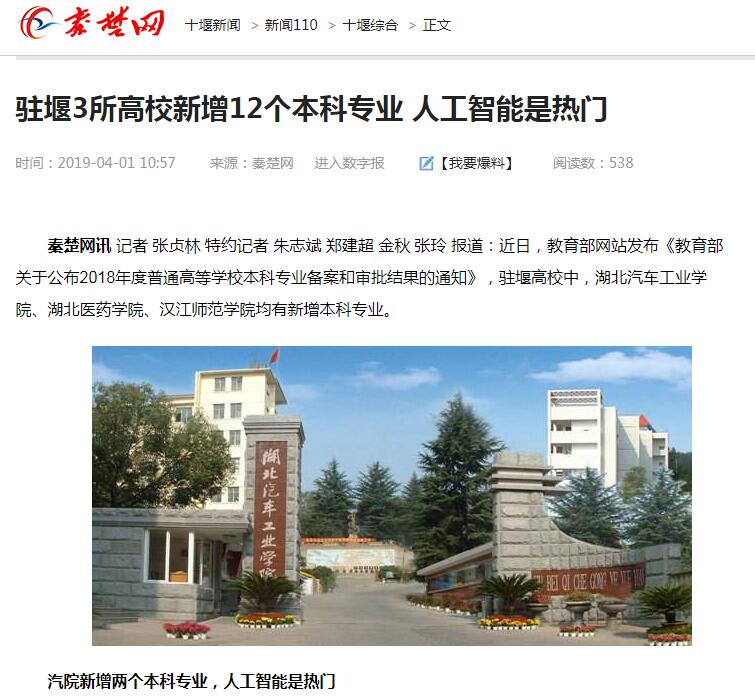 【秦楚网】驻堰3所高校新增12个本科专业 人工智能是热门
