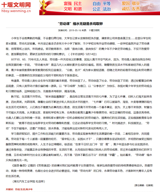 【十堰文明网】“劳动课”缩水无疑是杀鸡取卵