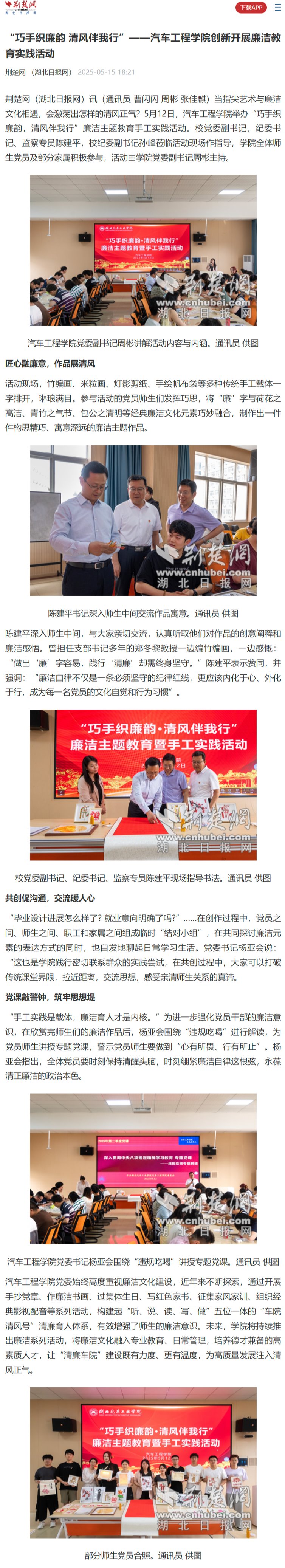 【荆楚网】“巧手织廉韵 清风伴我行”——汽车工程学院创新开展廉洁教育实践活动